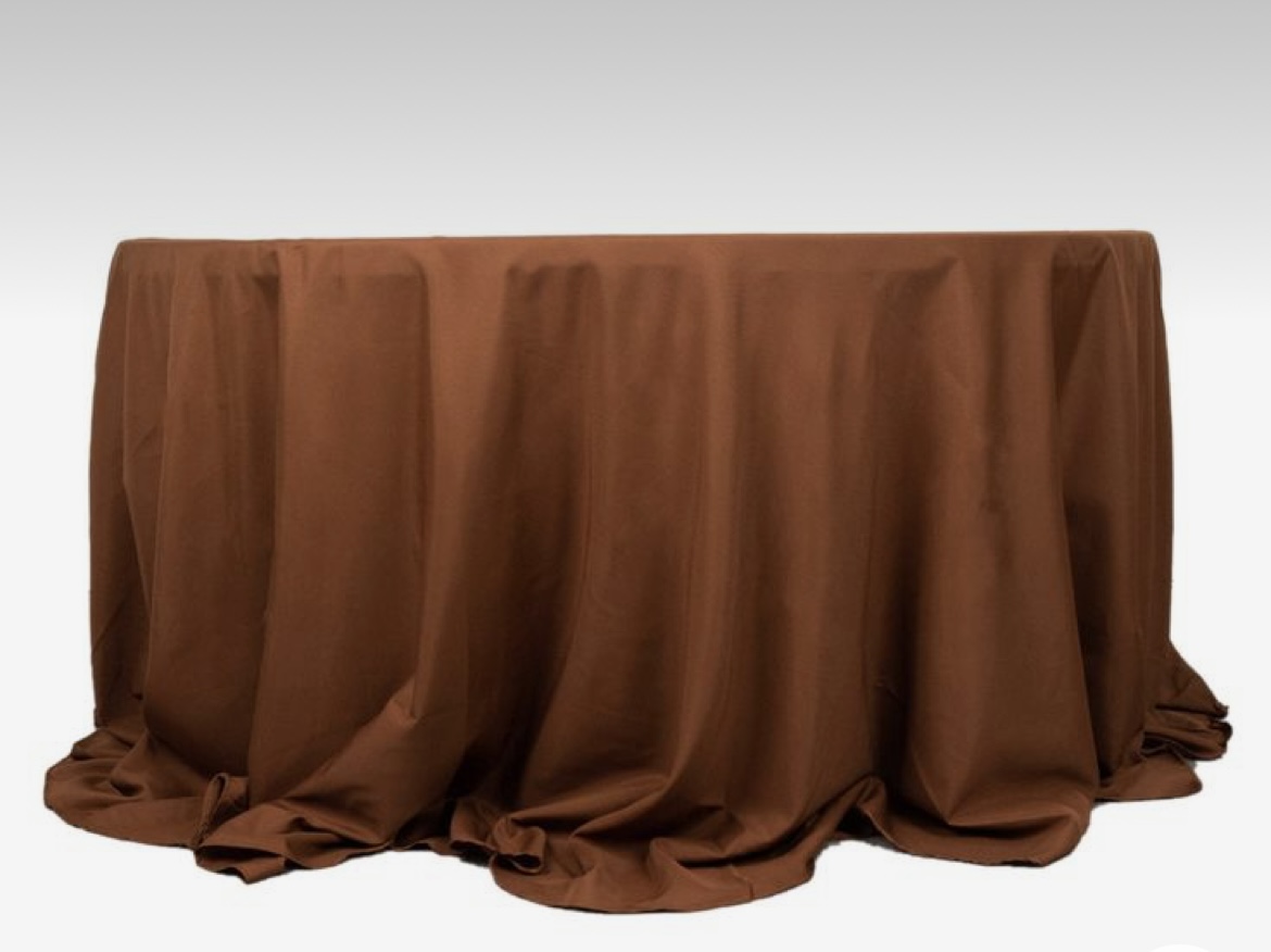 Hnedé rovné obrusy z gabardénu v šírke 2,25m.