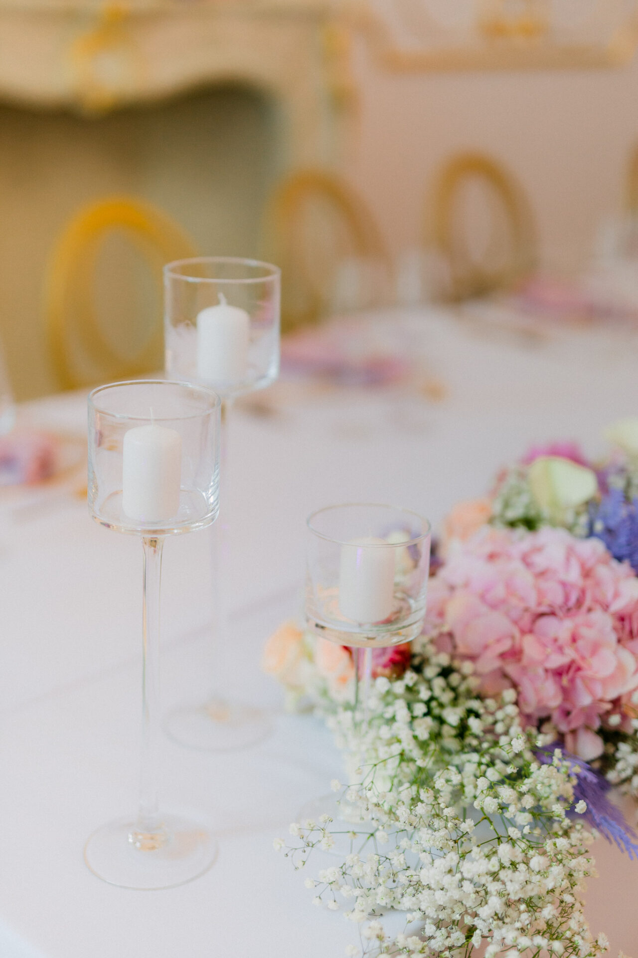 Sklenené svietniky na vysokej stopke v troch rôznych veľkostiach.