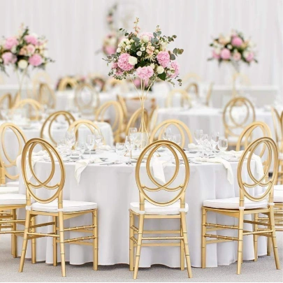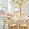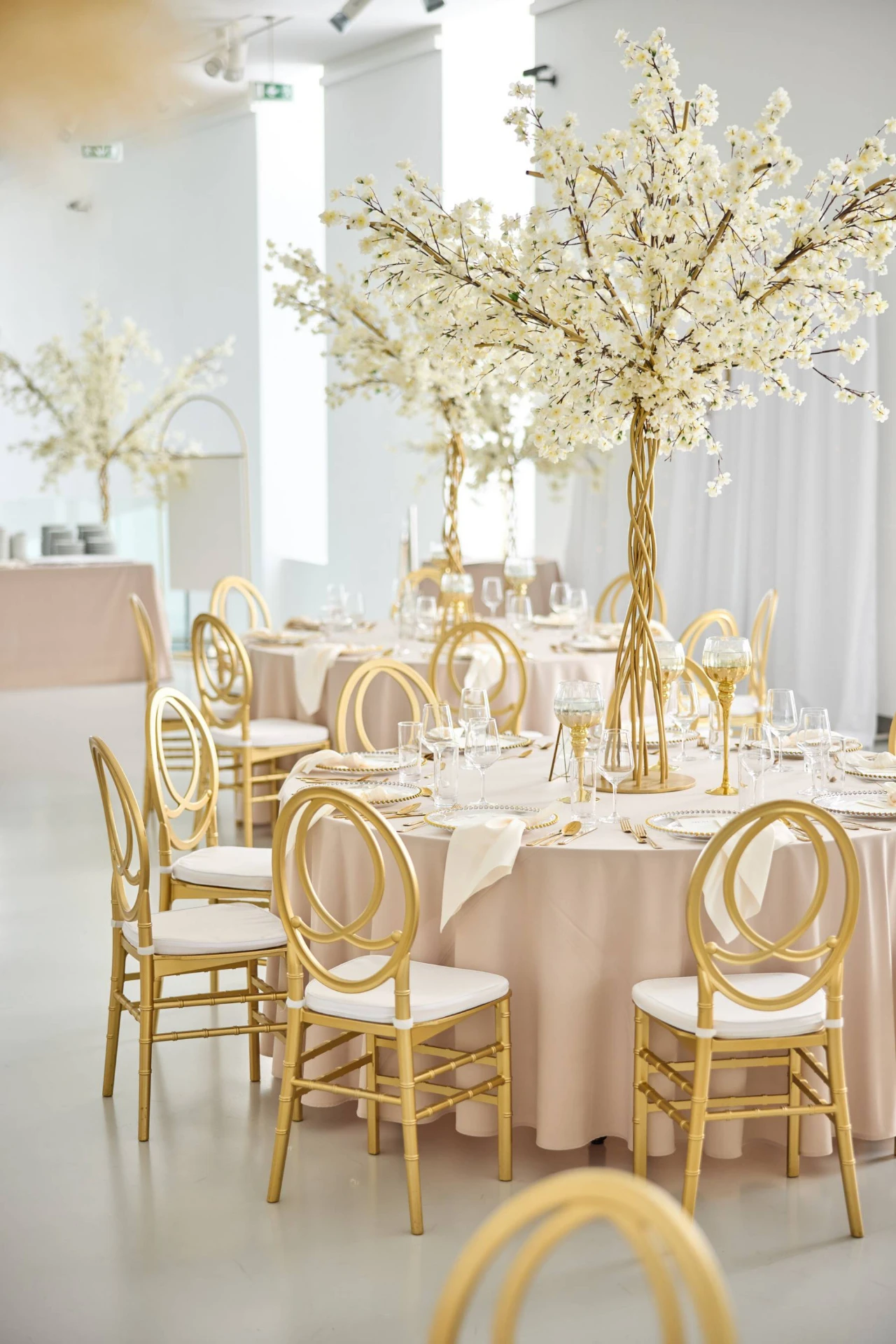 Zlatá phoenix stolička na prenájom zaujme na prvý pohľad svojim jedninečným dizajnom a vytvorí nezabudnuteľnú svadobnú atmosféru.