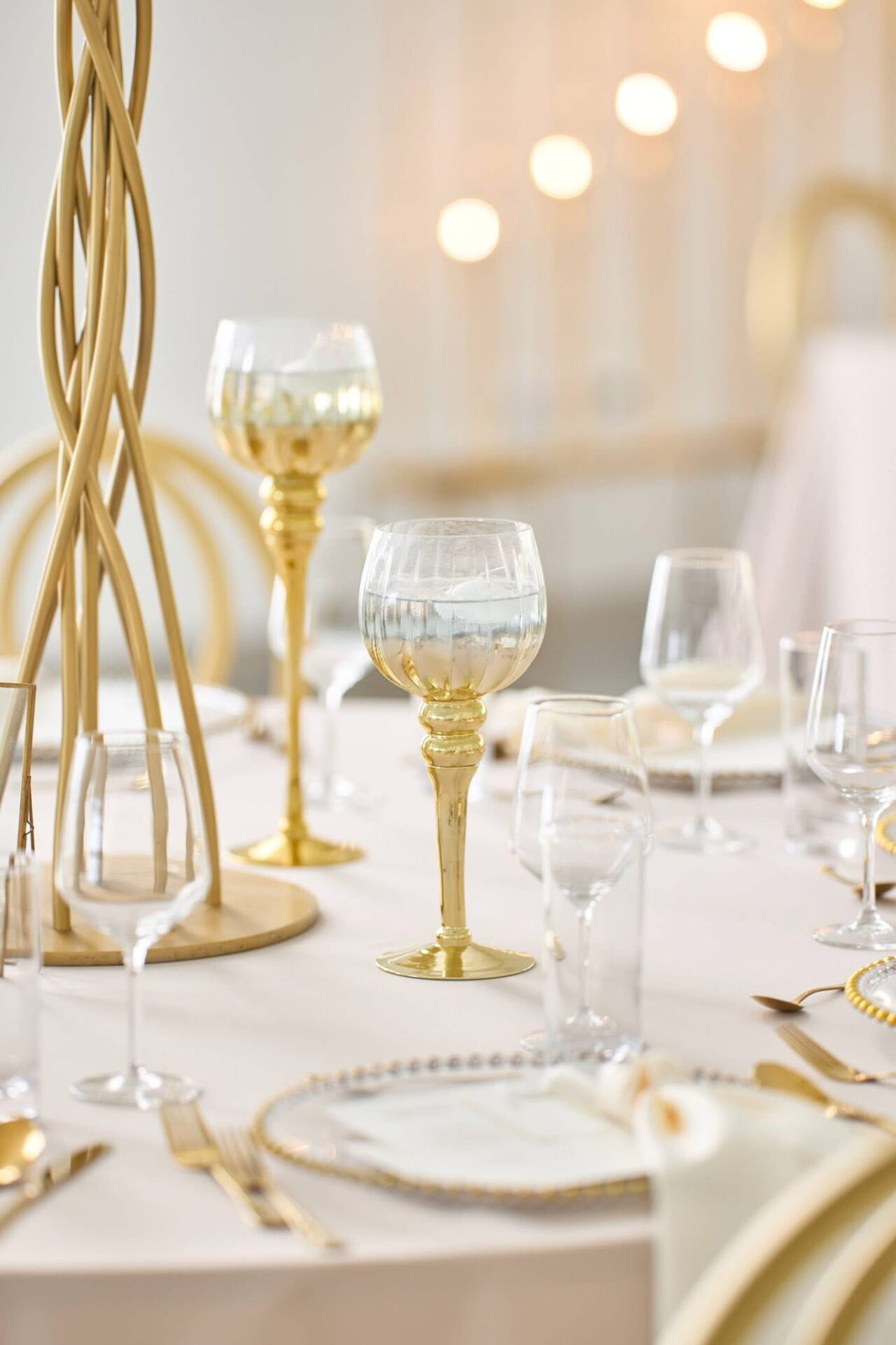 Zlaté sklenené svietniky. 3ks svietnikov v jednej sade v rôznych veľkostiach.